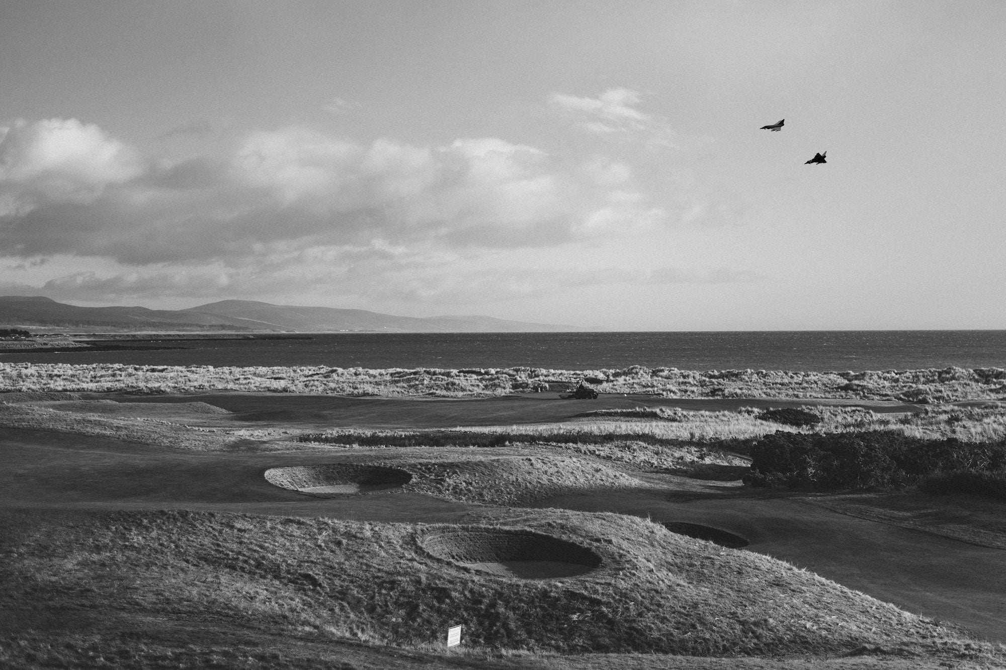 And further north, in Lossiemouth,Typhoons still roar overhead, their sound briefly overtaking the crack of a crisply struck iron at Moray Golf Club, or at Royal Dornoch, where the course’s northern solitude meets a wide Highland sky.