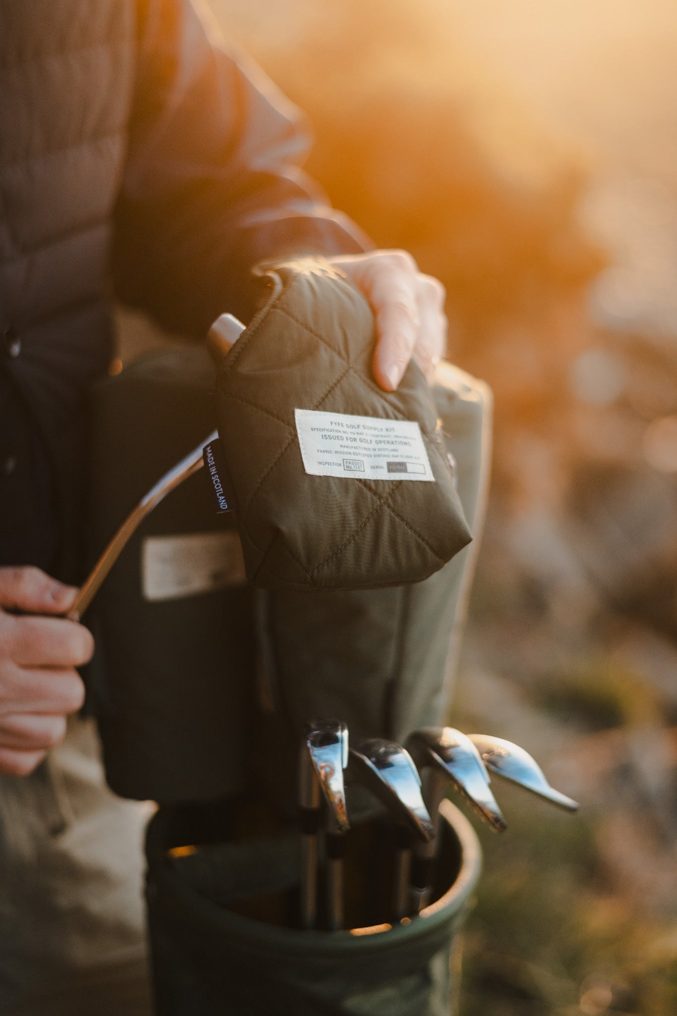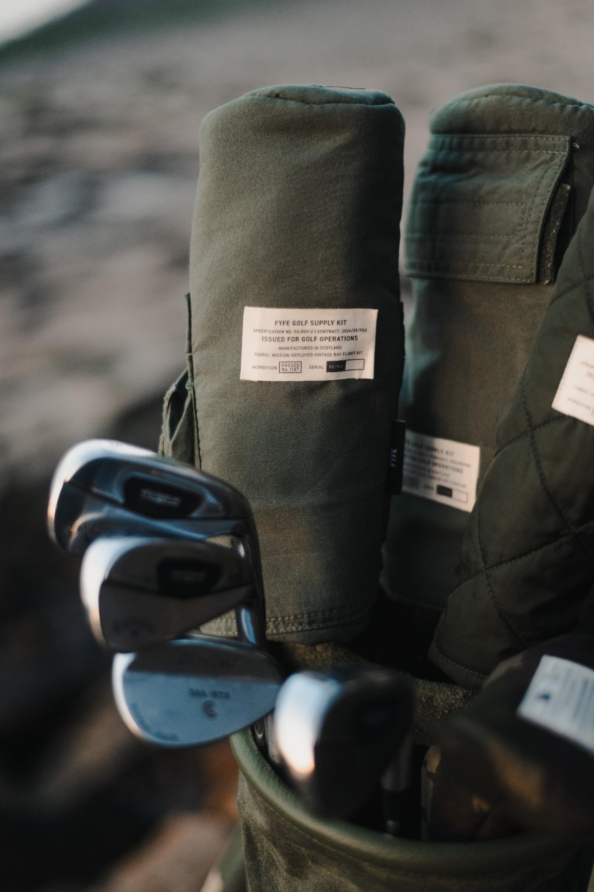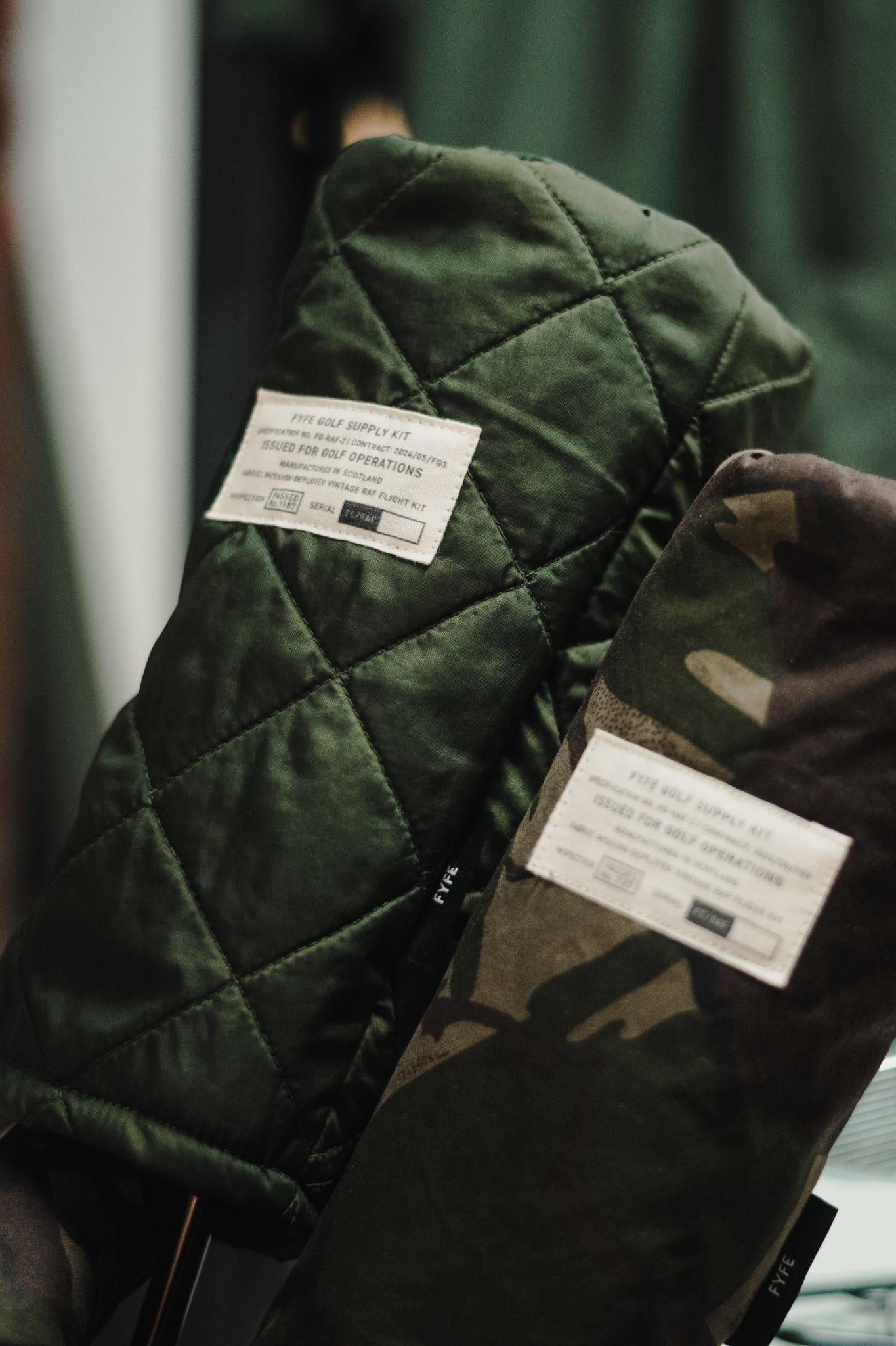 Drop Zone reimagines vintage RAF flight gear—tough, utilitarian materials—into limited-edition golf accessories, cut and sewn in Scotland. These are not replicas. They are remnants, reworked.
