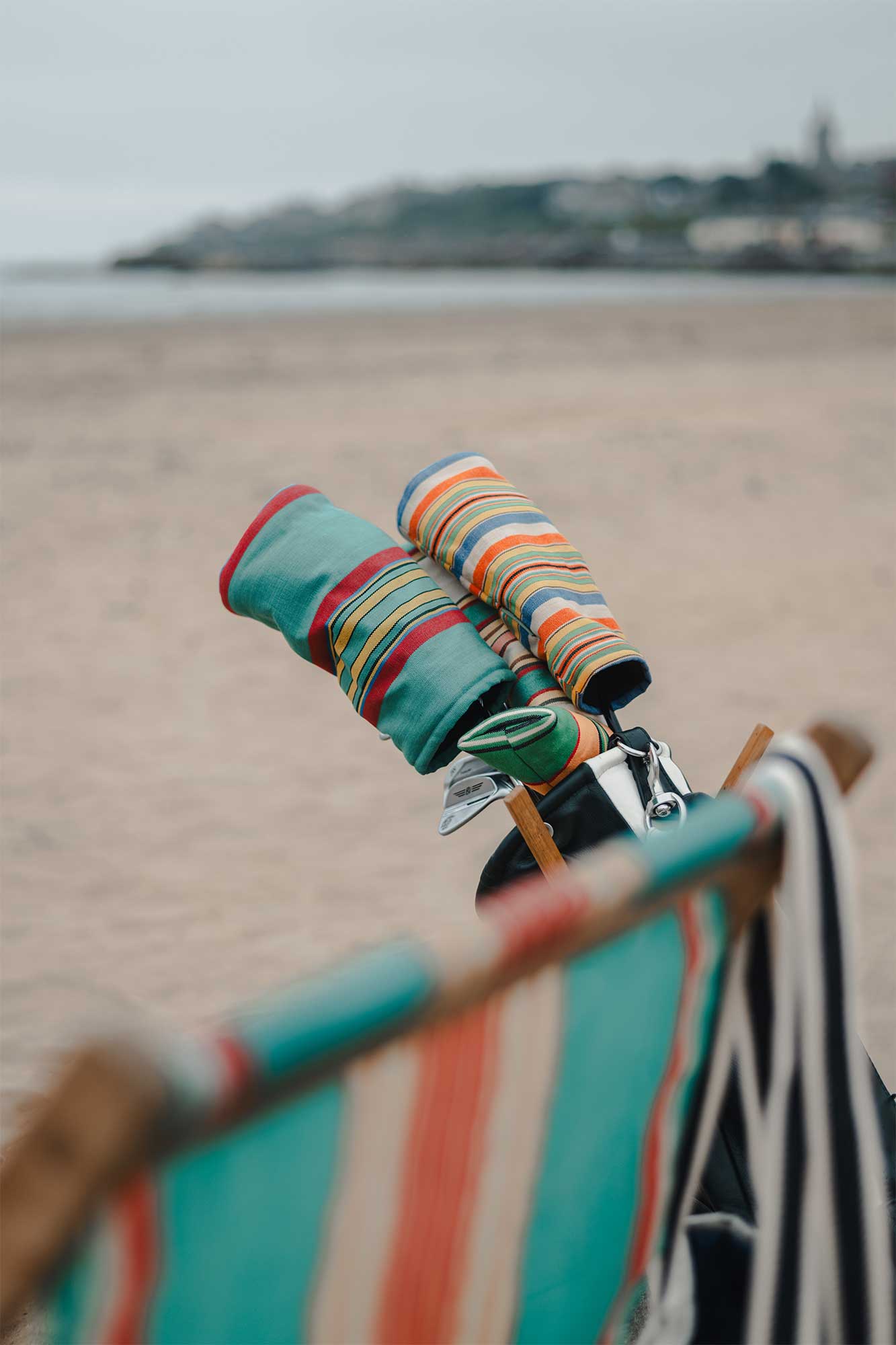 Each piece in this limited edition range tells a story of sun-soaked days split between sandy beaches and lively putting greens. We've carefully selected vintage canvas deck chair fabrics that capture the essence of these cherished memories, blending bold hues with softer tones to create a palette that's both nostalgic and fresh.